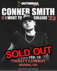 Conner Smith makes his Thirsty Cowboy debut on Friday, February 10th. Tickets are $10 and on sale on Friday, January 13th at 10am. Limited Seating available.