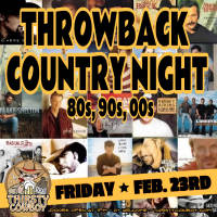 Join us for our Throwback Country Night on Friday, February 23rd with Country Music from the 80's, 90's and 00's played by our DJ Scott. Dancing all night long!!
